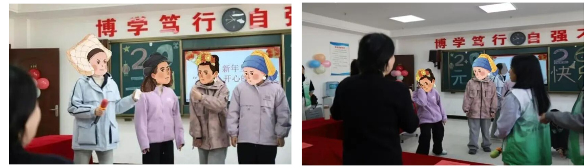 接下来的游戏环节精彩纷呈。“桃花朵朵开”热身游戏中,孩子们随音乐自由走动,音乐暂停后按指令快速抱团,暂未组队的孩子则以一句响亮的新年祝福传递心意。
