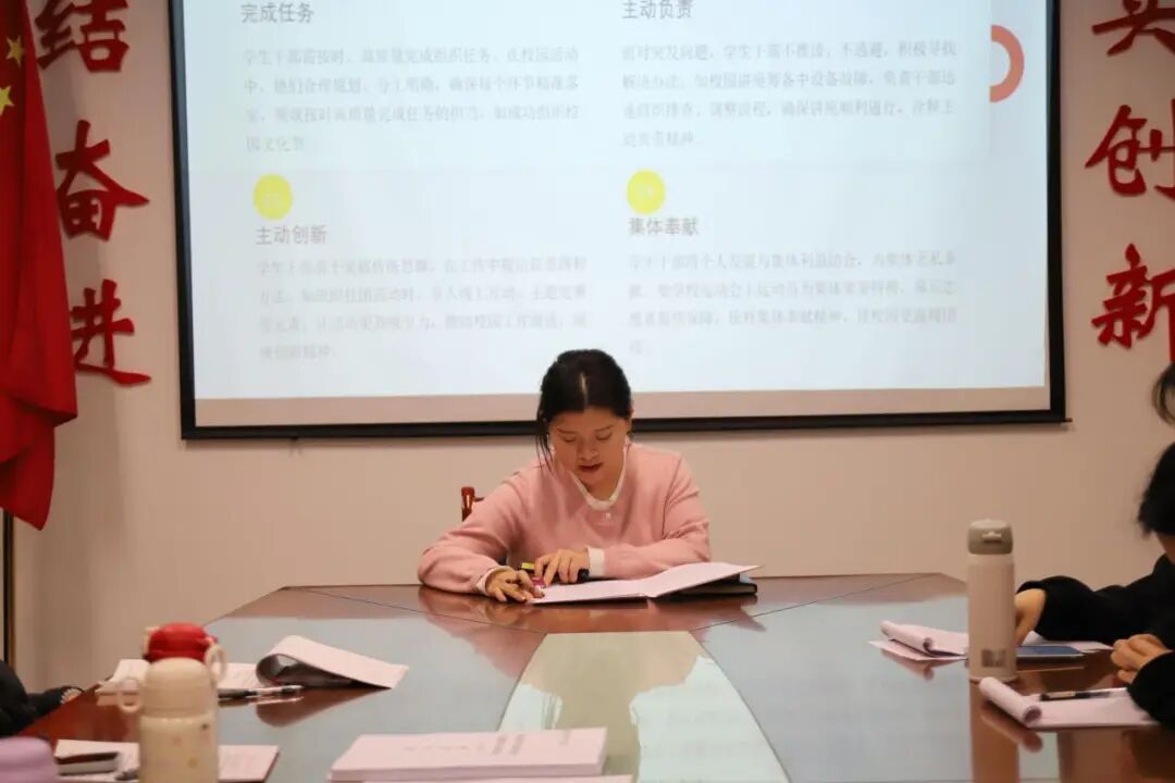 第三堂课《担当使命,砥砺前行》。团委学生副书记马彧盈同学系统讲解了基础团务知识,同时讲述了自身作为团干部,应以担当使命为方向,以砥砺前行为姿态,在实现中国梦的生动实践中放飞青春梦想,在为人民利益的不懈奋斗中书写人生华章。