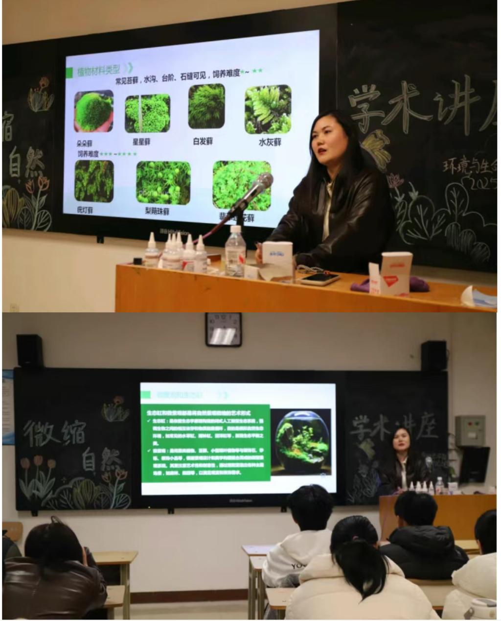 为助力学子精准把握创作方向、提升作品质量,11月20日,环境与生命科学学院郭云老师开展专题讲座。讲座中,郭老师围绕生态魔盒创作核心,深入剖析视觉美感与绿色内涵的平衡之道,引导学子在构思中融入科学生态理念。她通过展示优秀作品,拆解制作教程,从材料选择、结构搭建到意境营造全方位答疑解惑。现场同学专注聆听、认真记录,既收获实用实操技巧与专业知识,更深化绿色环保认知,为后续创作实践筑牢坚实基础。