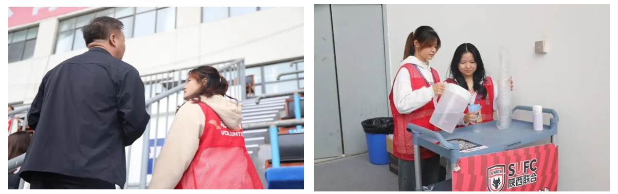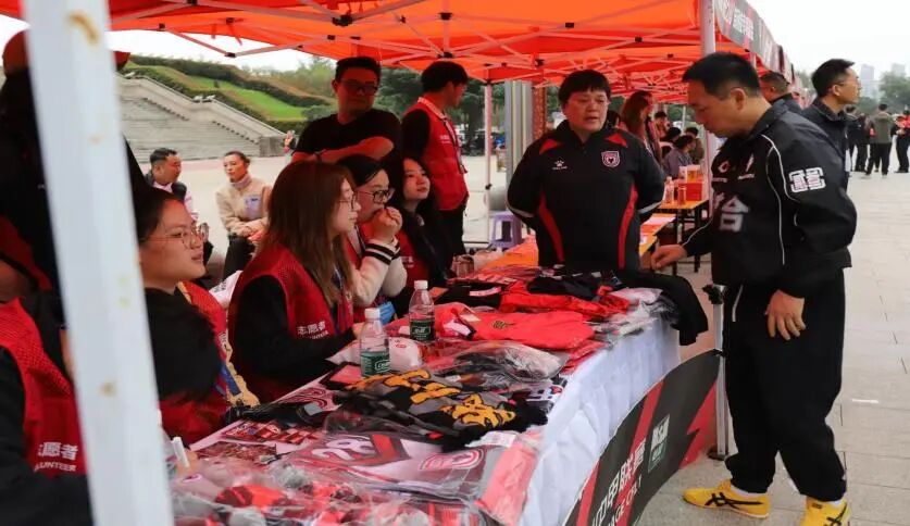 赛前,志愿者们活跃在场外各处:向入场球迷派发特色周边、细致介绍活动福利,笑容温暖且答疑耐心。现场分工明确、配合默契,从物资清点核对到机动应急响应,每个人都坚守岗位,穿梭忙碌的身影,构成赛场首道温暖风景。