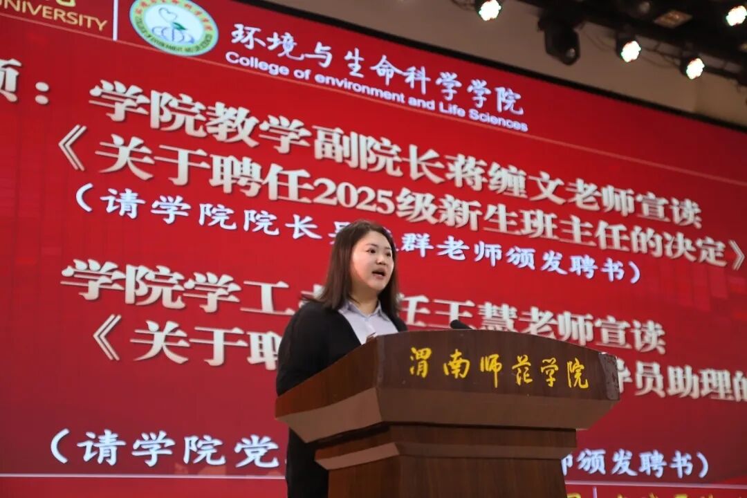 典礼上,教学副院长蒋缠文宣读了《关于聘任2025级新生班主任的决定》;学工办主任王慧宣读了《关于聘任2025级新生辅导员助理的决定》。